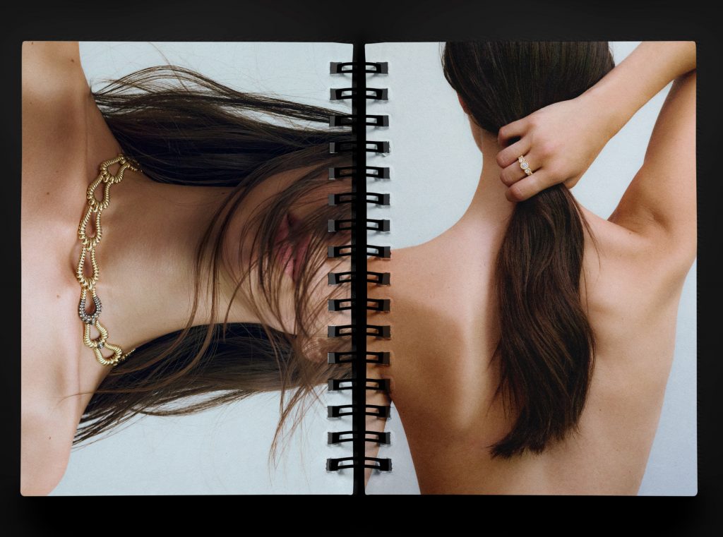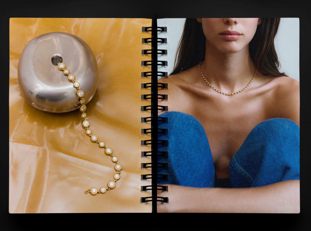 A clean, refined jewelry shoot for Leandra highlighting quality and sophistication.